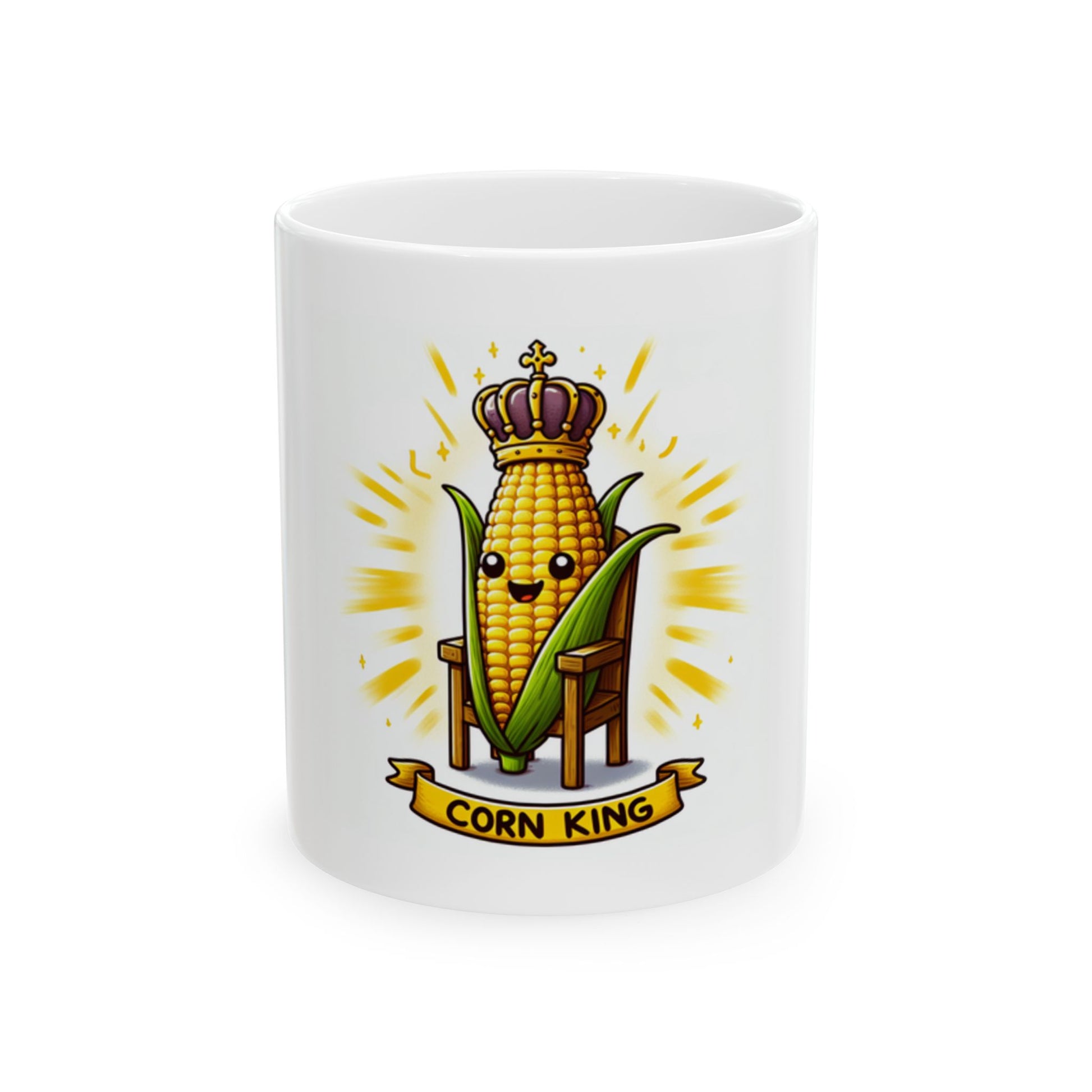 Whimsical Corn King Ceramic Mug, Funny Novelty Cup for Coffee or Tea, Unique Kitchen Drinkware, Corn Lovers Gift, Farmhouse Decor, 11oz 15oz